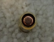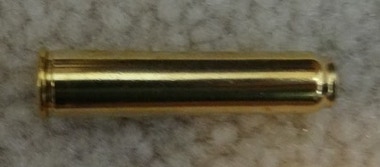 7.62x38R Cartridge from side and top, showing recessed bullet and gas seal rim at front.